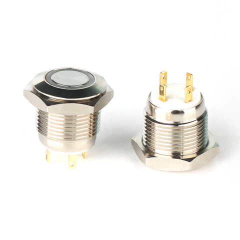 16mm Metall-Druckknopf schalter Beleuchtete LED Wasserdichter Momentan-Metall-Druckknopf schalter mit grüner LED